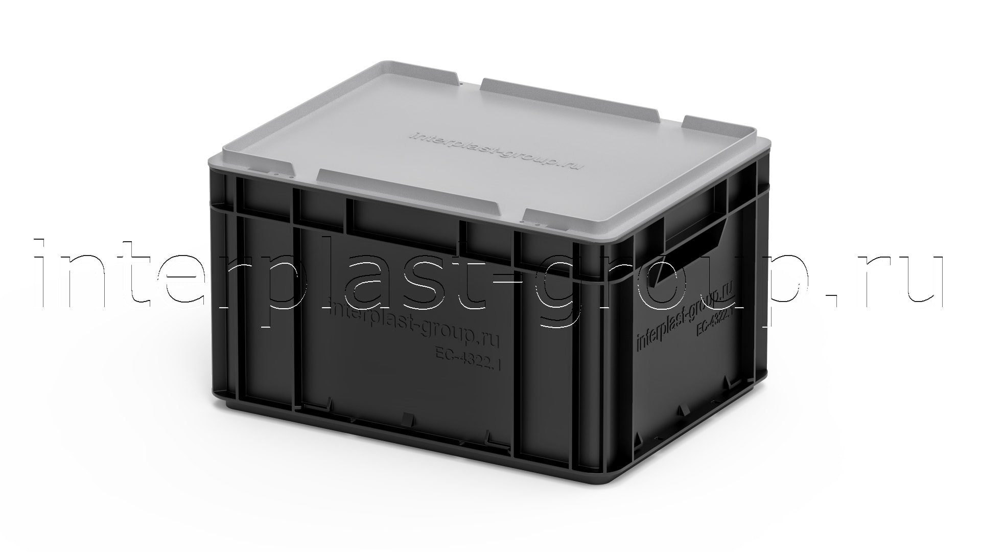 Евроконтейнер открытые ручки/сплошное дно (черный), 400x300x220 мм