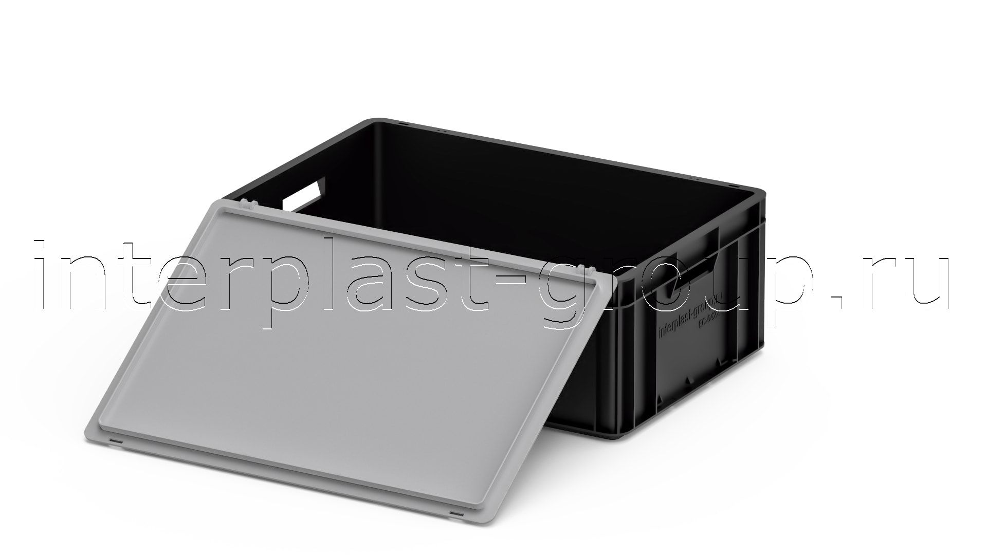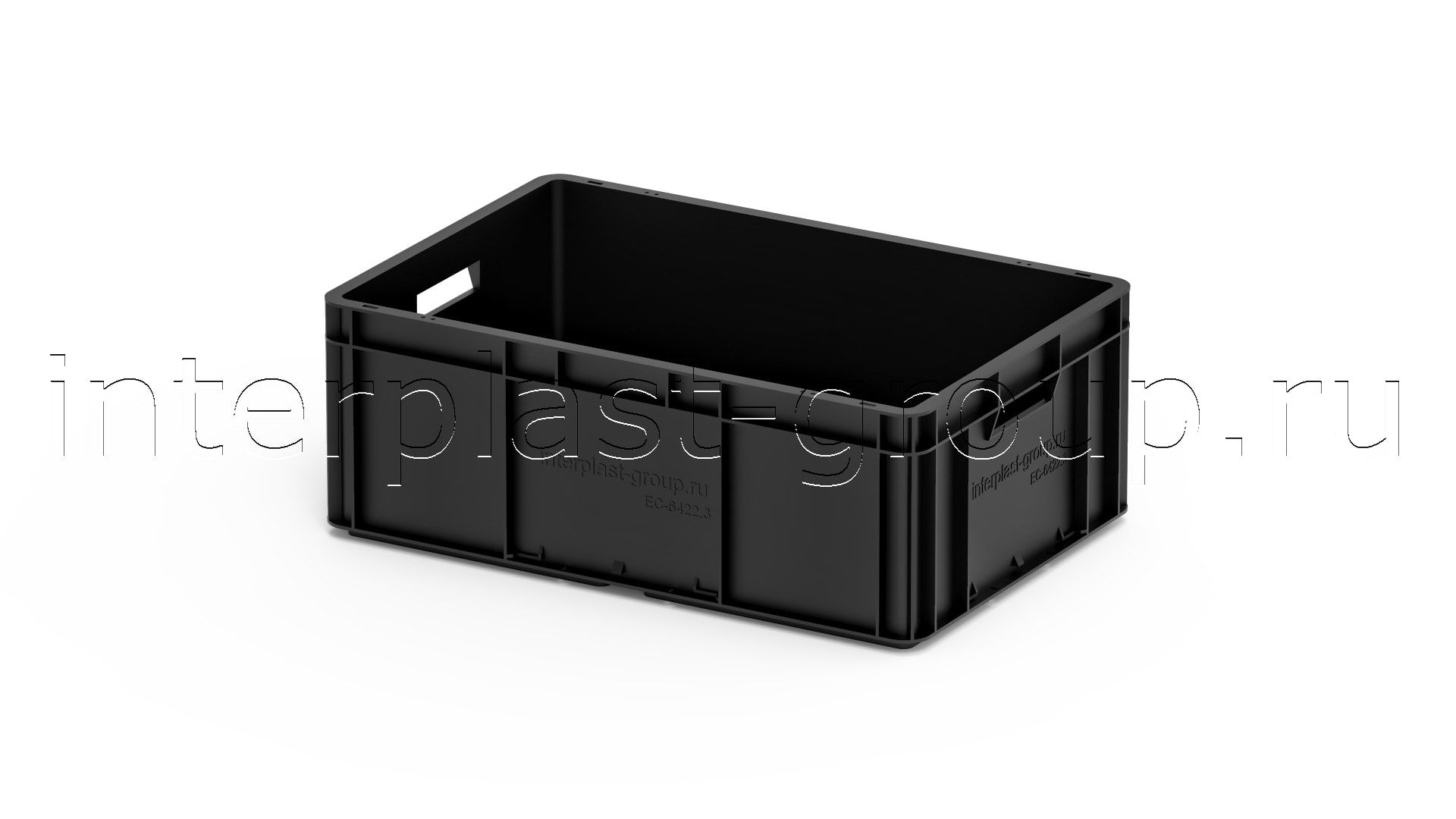 Евроконтейнер открытые ручки/усиленное дно (черный), 600x400x220 мм