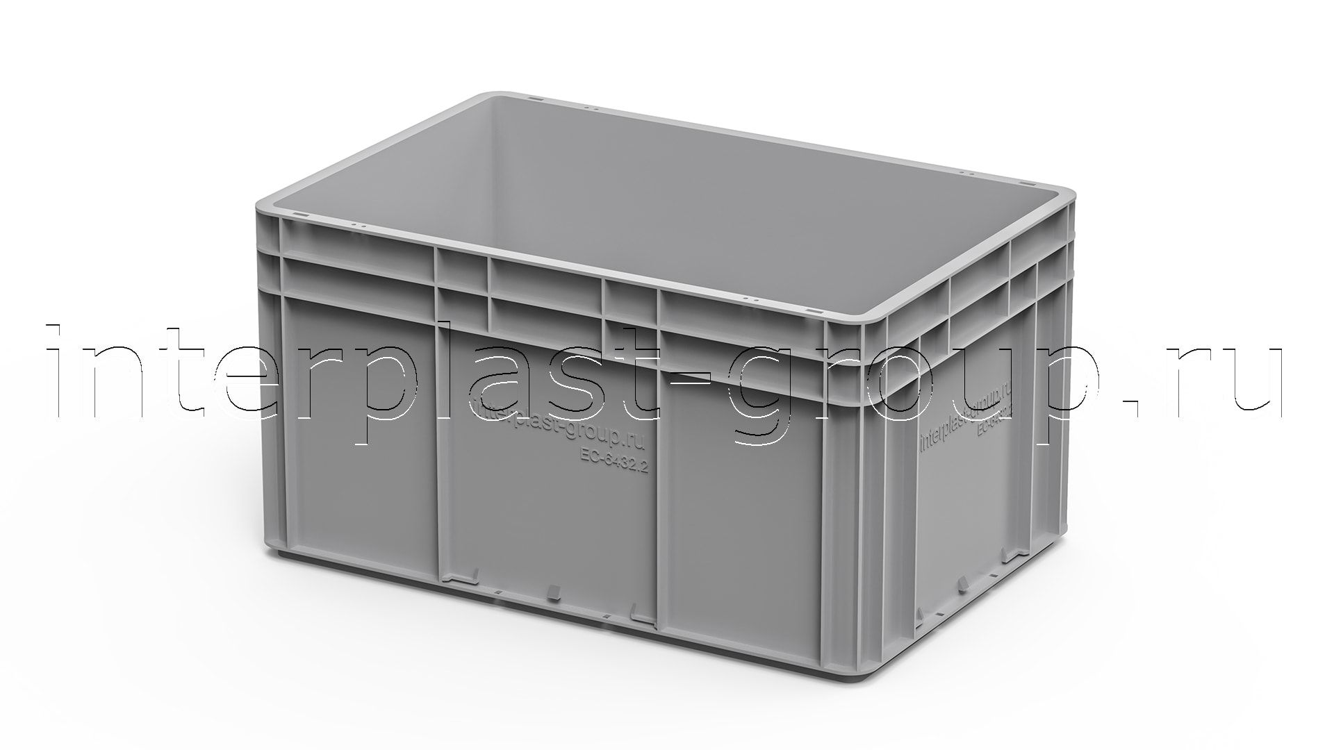 Евроконтейнер закрытые ручки/сплошное дно (серый), 600x400x320 мм