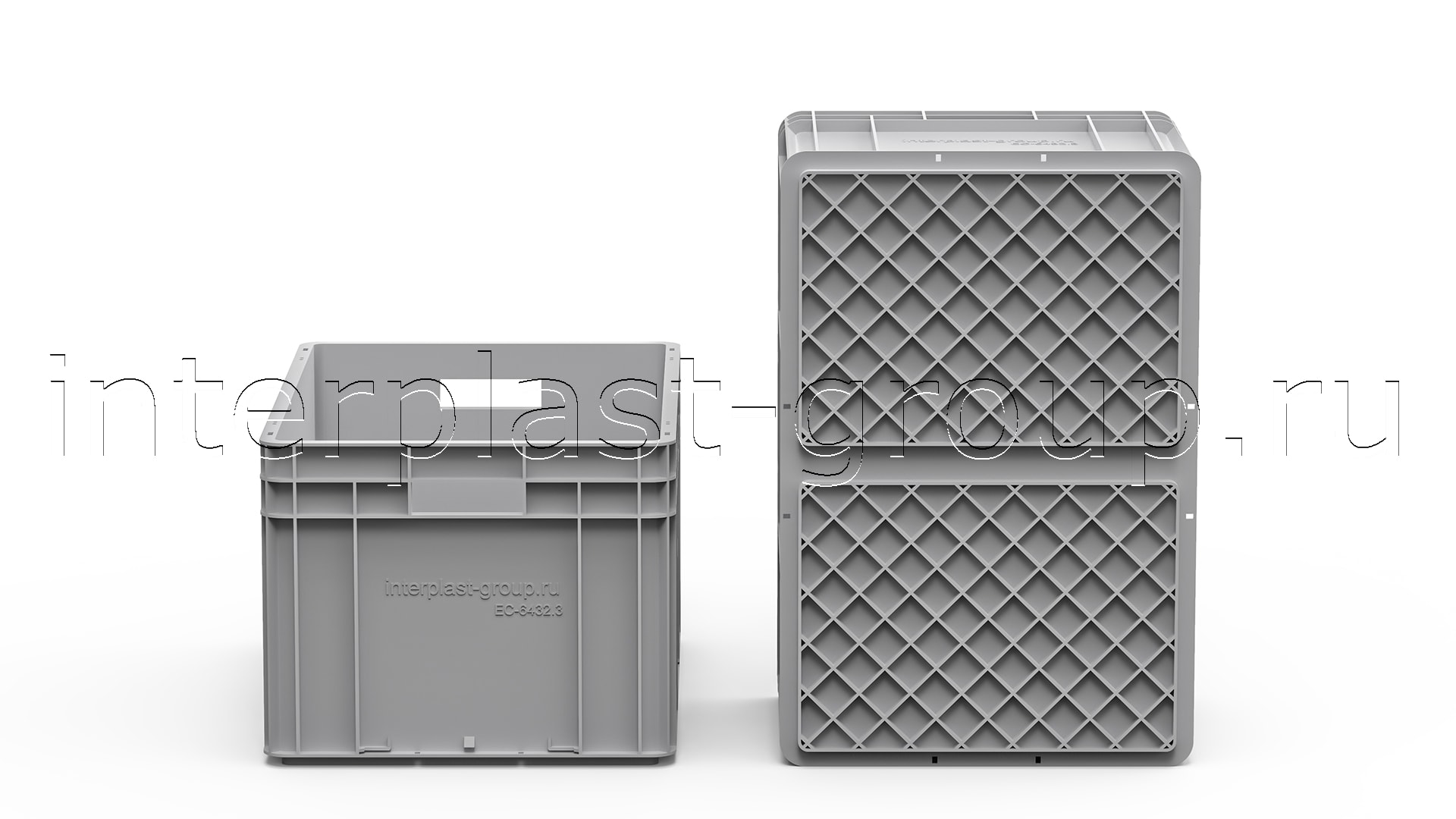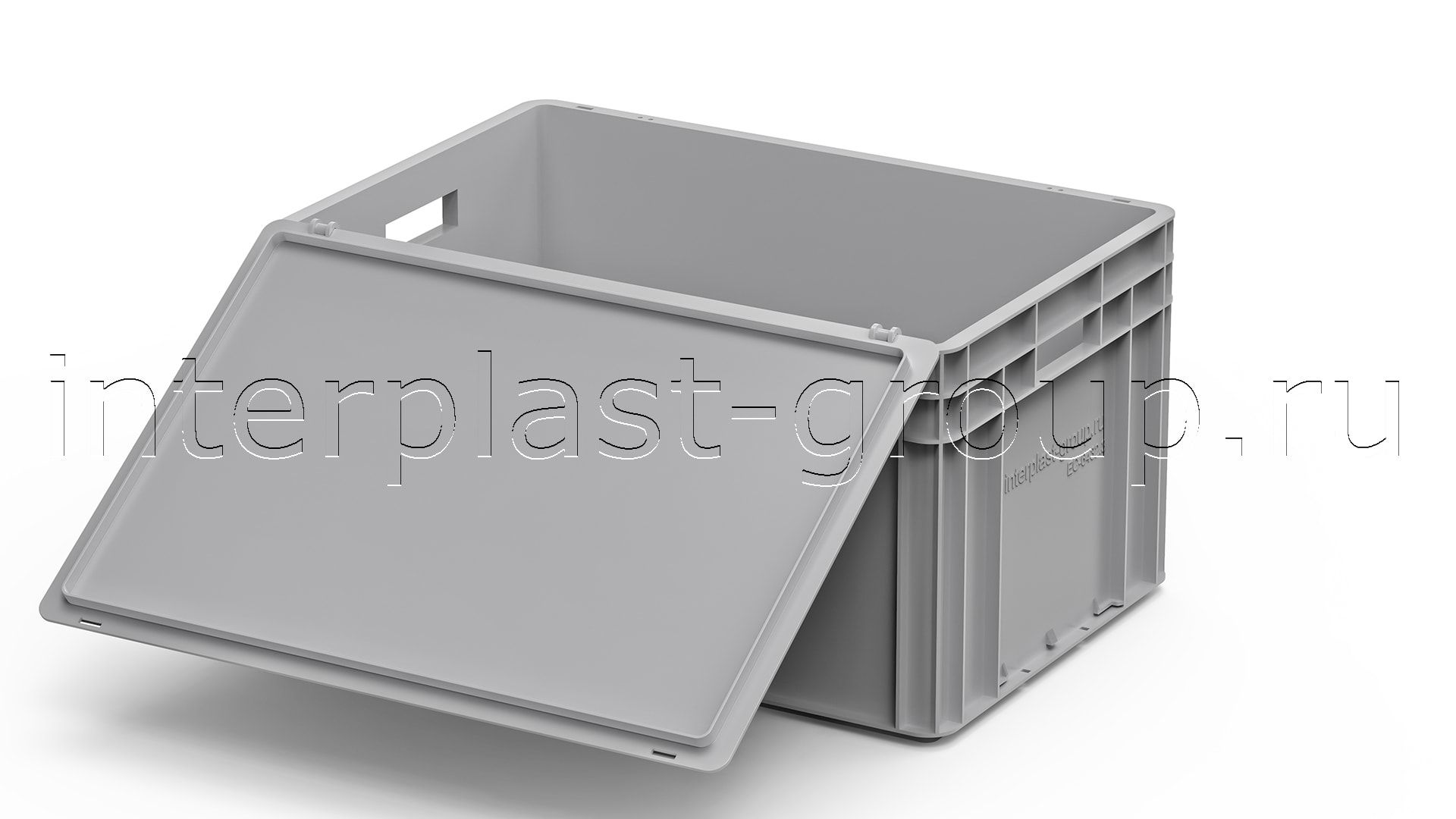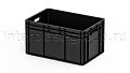 Евроконтейнер открытые ручки/усиленное дно (серый), 600x400x320 мм