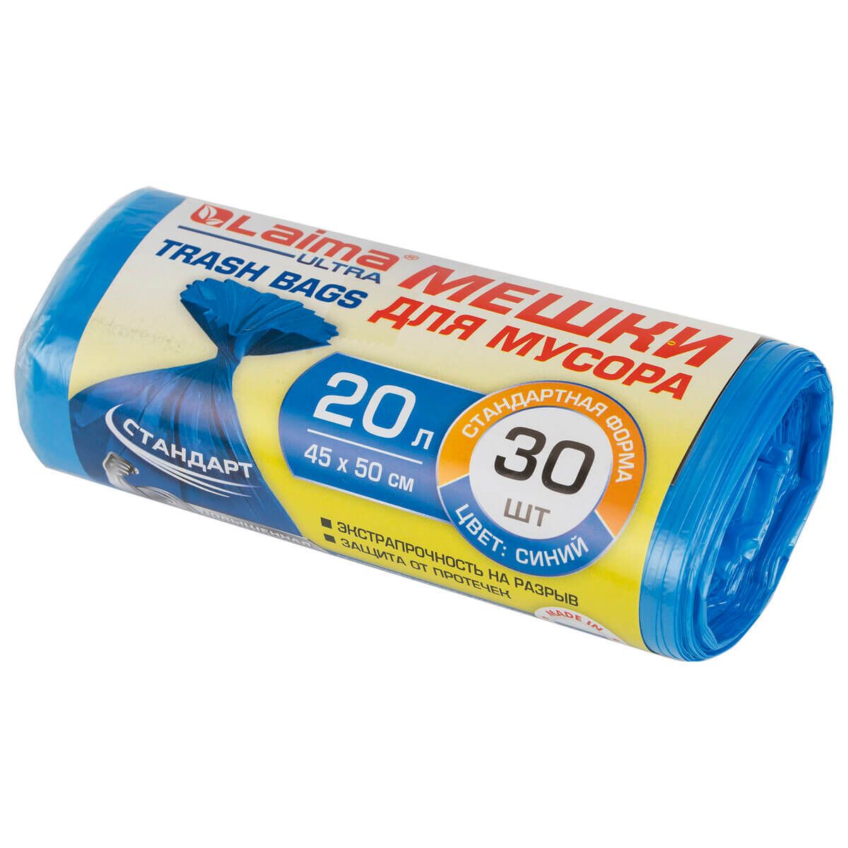 Мешки для мусора 20 л, синие, в рулоне 30 шт., ПНД, 8 мкм, 500х450 мм, LAIMA, 607682 в Муроме