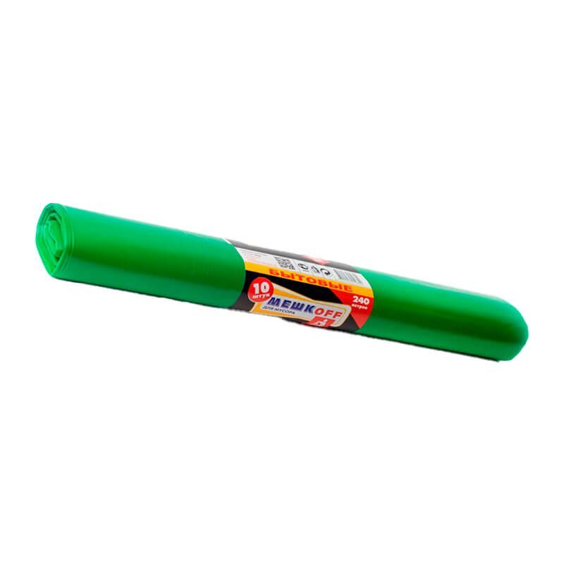 Мешки для мусора 240 л, зеленые, в рулоне 10 шт., ПВД 55 мкм, 1300х900 мм, МЕШКОFF, 4772