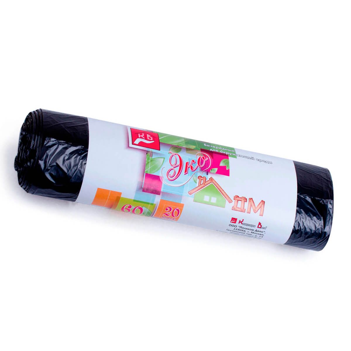 Мешки для мусора 60 л, черные, в рулоне 20 шт., ПНД, 7 мкм, 700х600 мм, Концепция Быта ЭкоДом, 601349