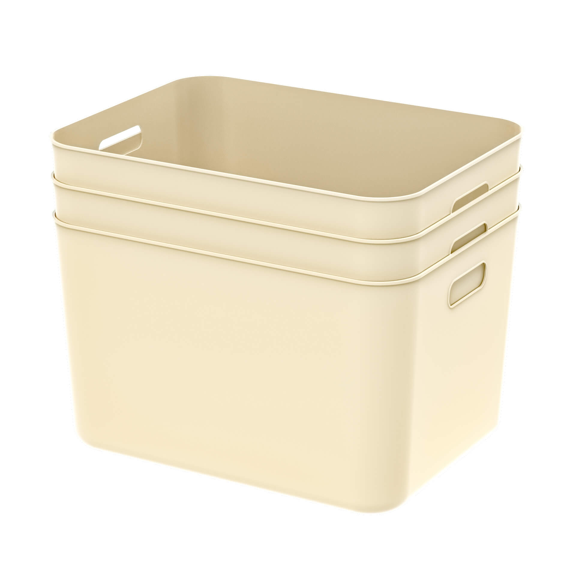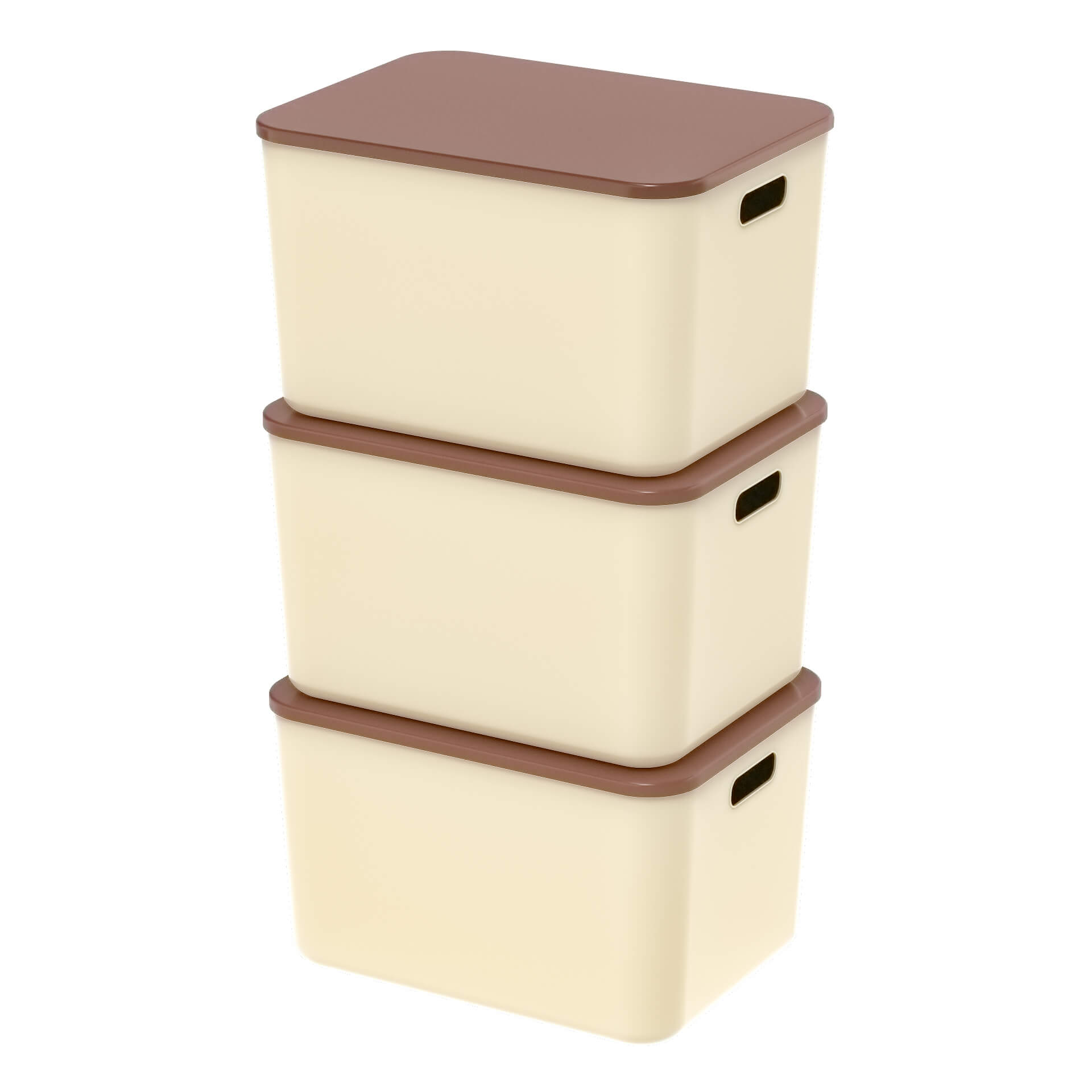 Ящик пластиковый вкладываемый 410х305х245 мм, бежевый, с коричневой крышкой и открытыми ручками – практичное и удобное решение для хранения