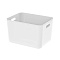 Пластиковый контейнер универсален и подходит для хранения одежды, игрушек, документов и других мелочей. Открытые ручки обеспечивают удобную переноску, а стильный дизайн гармонично вписывается в любой интерьер.